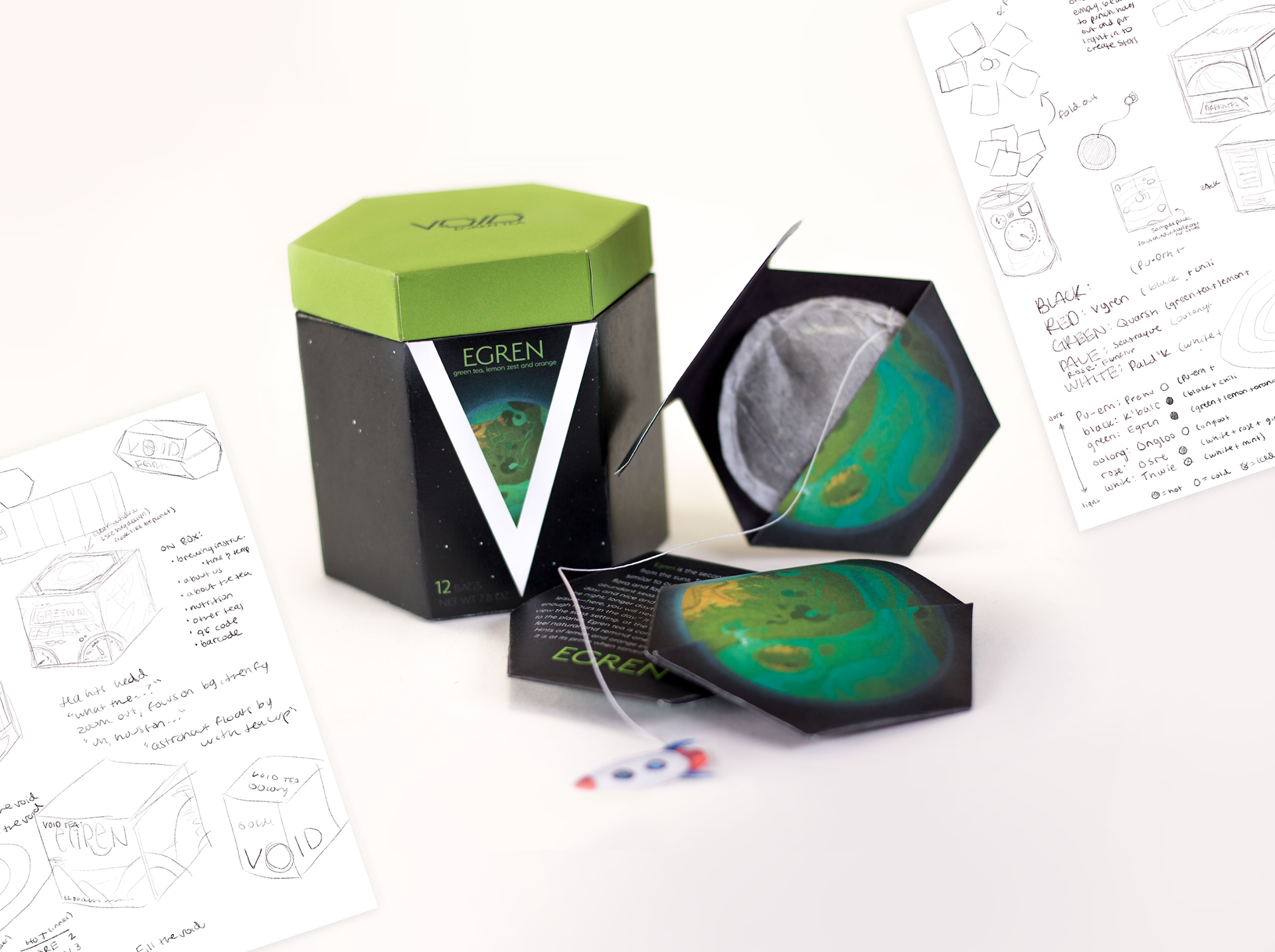 Void tea is a brand that celebrates the specialness of tea itself. People drink tea very intentionally, usually to find pleasure, conversation or a good time. In a way, they are looking to fill a void in their life. And what's the biggest void ever? Space. So each flavor is represented by a different planet which has a design and color palette reflecting the real life flavor.
